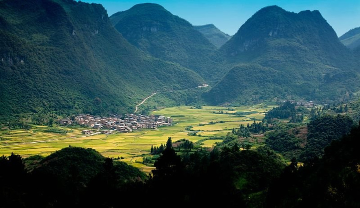 洪江村是荔波一个布依族聚居村落,从荔波县城沿着一条大山旁凿出的崎岖山路驱车20公里,穿过一座山腰就可到达。站在山入口处眺望, 一片开阔而平整的土地便映入眼帘,零星散落着一些并不高大的房屋,一条小溪从远处的山中径直流出穿过村庄。