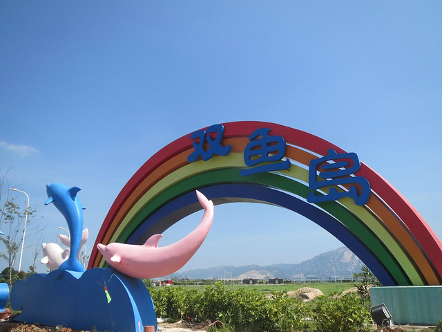 从卡达凯斯出来在路口搭乘1路车就可以经过黄金海岸然后到达厦门湾站台,从这边搭乘接驳车就可以去到双鱼岛。说到双鱼岛估计大家首先想到的就是马尔代夫那个,其实在漳州港这边也有一个双鱼岛。,这是我国首例大型的离岸式人工岛,人工填出来的海岛想想都好厉害的说。我这次行程的主要目的地也是来这边,这边开发的还不算非常完善,主要的娱乐活动就是露营烧烤和泡泡海水,对于过惯了忙碌的都市生活的我们不失为是一个很好的放松方法。