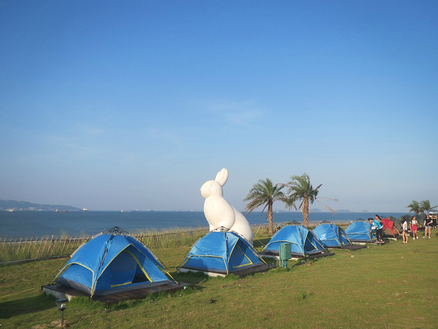 小帐篷在没有海风的时候会比较闷热,第一次露营住的不是很习惯,有点睡不着。