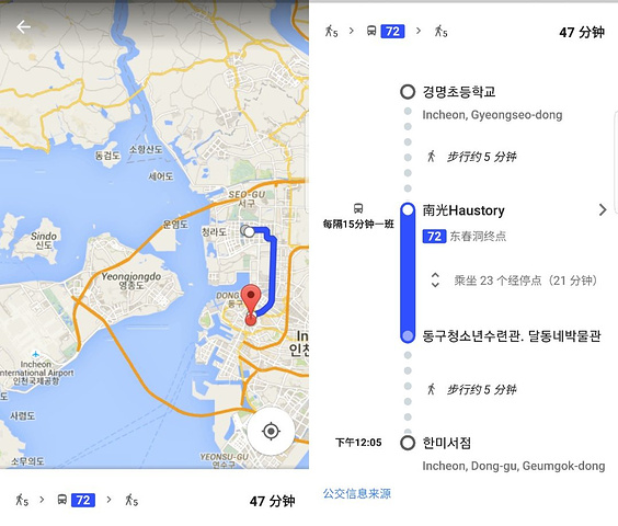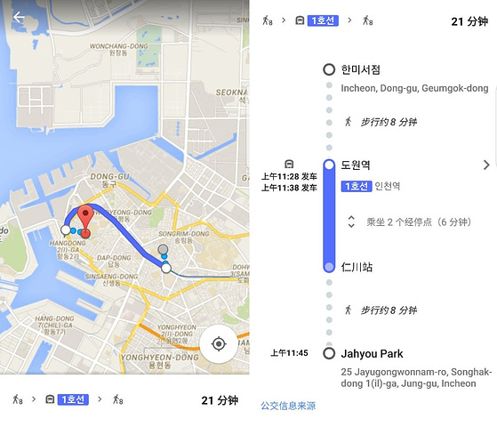接下来的路线就比较曲折了~回到刚才我们下车的地方继续搭2-1号公车坐4站到중흥S클레스 下车换成306号巴士。楼主由于数学不好,结果多坐一站多走了5分钟555~不过还好不是很远~这里要注意的是下车后,一定要去对面坐车~还好楼主有注意方向,不然不知道要开去哪里了(哈哈哈机智如我~)上车之后11站在배다리청과물시장 (这里不知道要怎么翻译)下车。这里可能要数的站比较多~如果会韩文的小伙伴听韩文,不会韩文的小伙伴尽量数一下站哈避免做错站,仁川这里真的路上没什么人,路上想要找个人问问路也找不着哈哈~就算找到个人那个人也不一定会英文呀~~