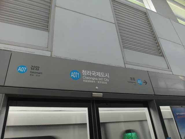 从仁川机场到青罗国际城非常快,地铁四站就到了,不到半小时。从地铁下来才是真正考验我们的时候了…
