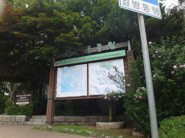 地铁1号口出来后其实很多条公车都可以到青罗湖水公园,所以我们搭了最先来的2-1号公车,大概5站在景明小学(경명초등학교)下车即可。