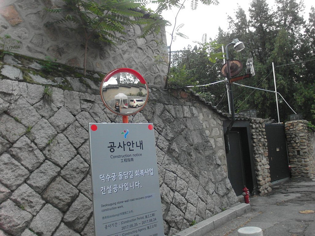 绕着德寿宫的外墙走~走大概10分钟左右,就可以看到类似电视剧里面那样的墙壁了,但是鬼怪大叔的拍摄地还在里面一些哟~千万不要放弃啦!虽然已经走了很多路了嘿嘿!大家有看到这个镜子吗?这个镜子就是鬼怪大叔身后的那一面哟~