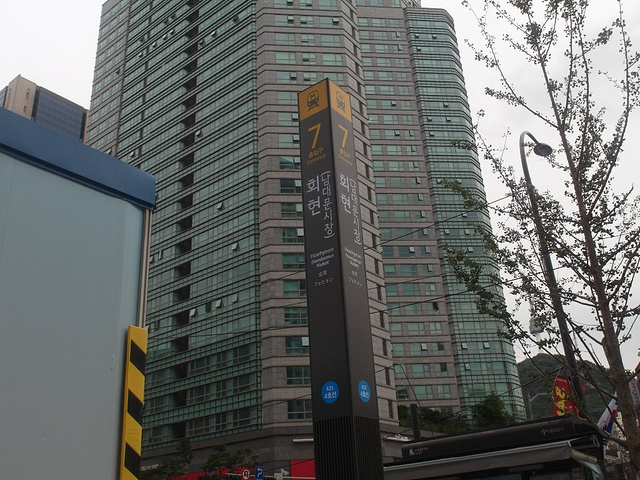 四号线会贤站7号口出,就可以看到新世界的建筑物了