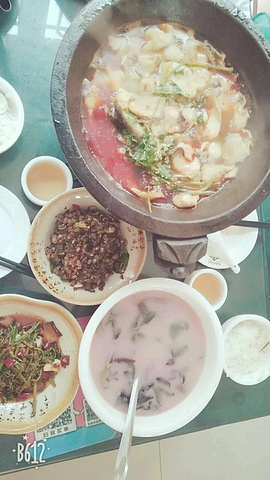 在凤凰的好多饭店都是可以美团的,套餐也确实很划算,可以体验一下当地的特色菜。我们俩都不是很喜欢鸭子,所以没有吃血耙鸭,尝试了一下石锅鱼,味道不错,还有当地的腊肉,我不是吃的太惯,不过尝试一下也未尝不可。最吓人的莫过于时蔬汤,上来的时候还以为是毒药,因为它真的是照片上的浅紫色的!不是滤镜效果,是实实在在的浅紫色,我徒儿胆子比较大,第一个尝试了一下,其实没什么味道,汤的颜色好像是里面的紫色蔬菜掉色。其他菜无功无过,石锅鱼的味道不错,连我这个没有麻麻在身边就没法吃鱼的人都吃了很多,而且鱼汤很好喝~