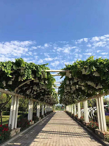 葡萄长廊,上面白色的就是葡萄哦~