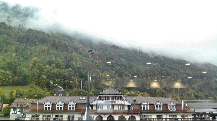 一抵达因特拉肯东站我们就又开始了找取款机之旅,因为到了瑞士当然要用瑞士法郎划算啦!!加之到现在我们身上也就剩了5欧~哭笑不得啊~~经过一番寻找后我们在因特拉肯东站对面的超市取款机成功取得了长得不太好看的瑞士法郎= =取款机很不起眼,在某个收银台的外面,是可以取银联的!!!但是天不如人意,在我们准备返回车站找去旅舍的时候天下起了雨!!还不小,我俩互看了下。。。表示,看来天都让我们在这消费了= =我俩于超市二楼的餐厅坐下,点了些米饭和奶酪吃个。。。下午餐吧!!(旅途中的三餐好像都不太规律的说= =)但是口味都不咋地,米饭配一些菜加肉小碟9法郎,中碟好像12,大碟好像是15,类似自助餐,厨师貌似是个印度人,当然当你打到一定分量,他总是会叫你停,enough!! 问题是我们全吃完了啊!!!虽然又是意料中的咖喱味的米饭,但是看到这种类似中餐的东东,心里还是稍微有些亲切感滴~