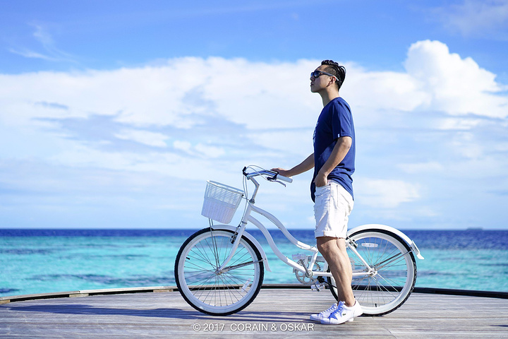 如果你也选择了阿雅达岛,那么推荐你一个装小清晰的拍照利器,顺便也是个超级实用的家伙,那就是自行车啦。租金10美元一天,因为岛也比较大,从水屋到餐厅,还有酒吧距离都比较远,而如果每次出行都叫管家开车来接,会浪费很多时间,所以一辆好看又实用的自行车成为了我们这几日最主要的出行工具和拍照道具