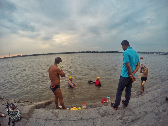 松花江畔,小号声悠扬深远,伴着野泳归来的大爷大妈们在江边沐浴,他们悠然自得的敲打着手中的洗发水、沐浴液在江边欢快的洗啊、涮啊,真是豪迈奔放、不拘小节。极想拍拍吹号老汉的肩膀“大爷!能不能吹一首'泡沫'!”