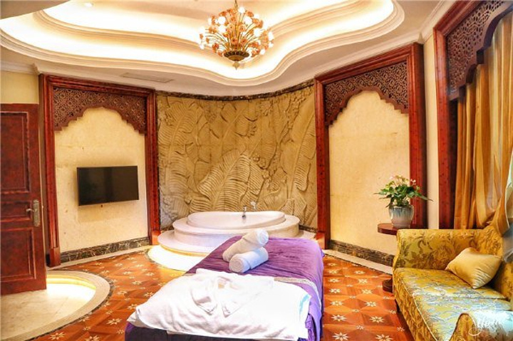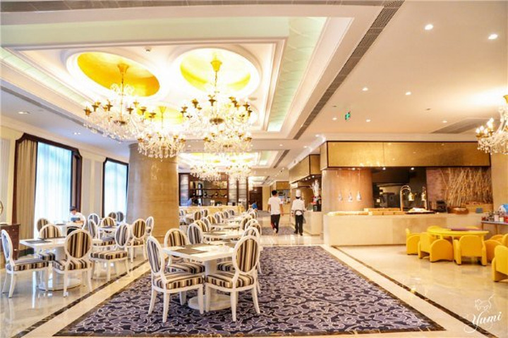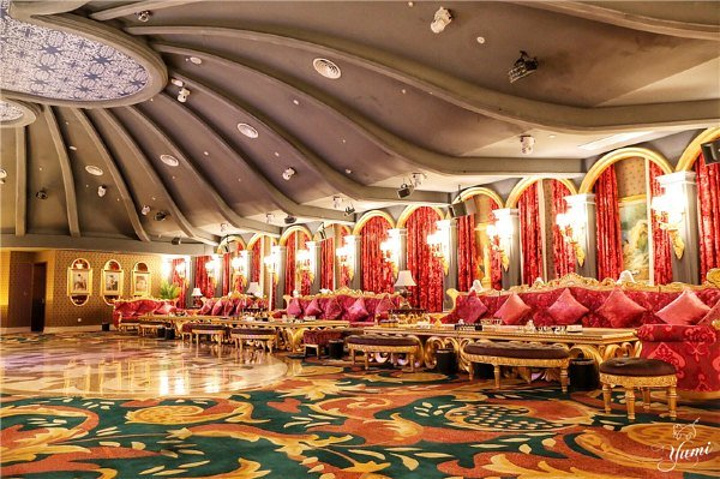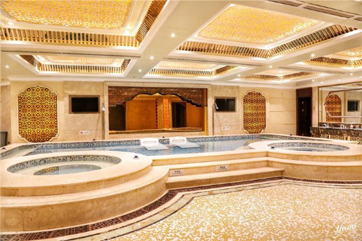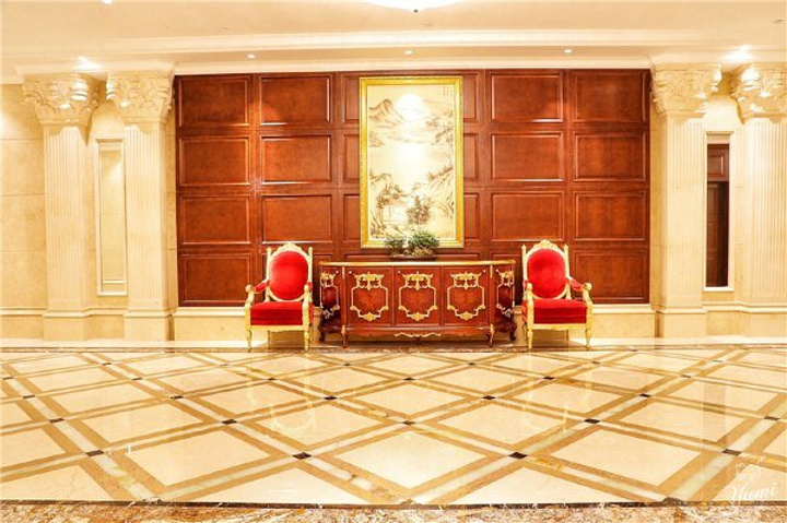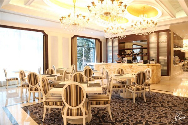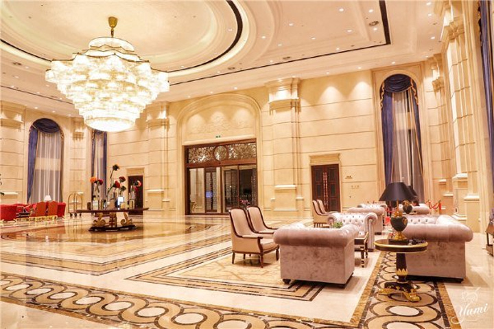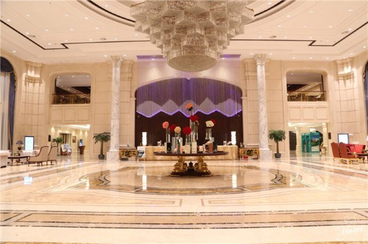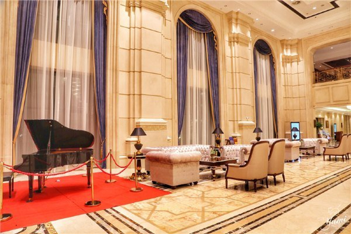 走进酒店大堂,便感受到了内部的壕气,恢宏无比的大堂还有钢琴演奏。 头顶水晶幕般的吊灯数万串施华洛世奇水晶点缀而成,整个大堂金碧辉煌。