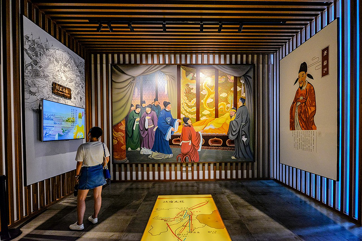 一层分为门厅、序厅、胭脂河开凿5D漫游体验区。综合运用数字影像、场景还原、艺术灯光等手法,乘船漫游中了解胭脂河的前世今生。