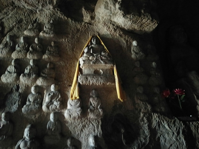 犹豫之际,看到一扇紧闭的大门但是没有上锁。推开一看,一股凉风扑面而来,香烟袅袅,再仔细看,别有洞天
