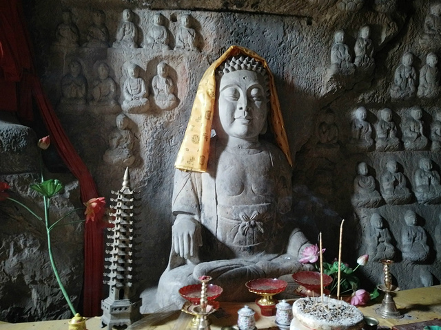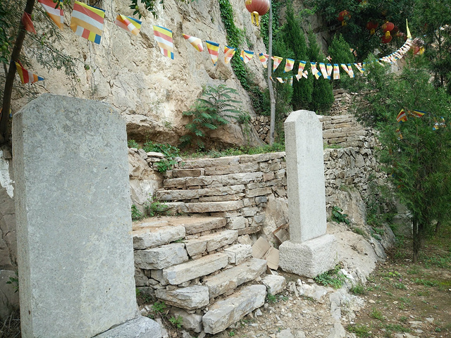 在前往苍岩山的路上,我们看到了一个去千佛寺的指示牌,就计划着从苍岩山出来去那里看看。谁知回来路标并不明显,不知不觉开过了,发现以后又往回开了7公里,看见了有千佛寺指示牌的大院子,进去问了一下,一位老人给予了热情的指点,让我们继续向前开一点,不要过桥从一条小路上山,车可以停在离千佛寺不远的位置,走一点就能到。我们按照他指点的路顺利到达。实际位置应该是从苍岩山隧道出来不远的一条小路上,只不过没有路标我们开过了。