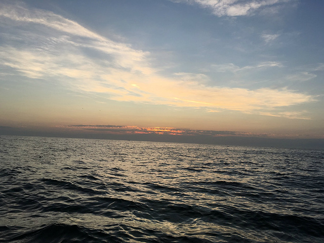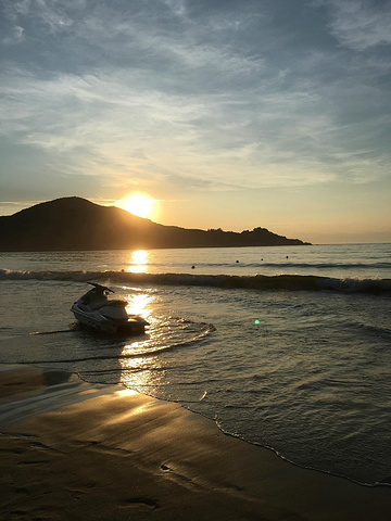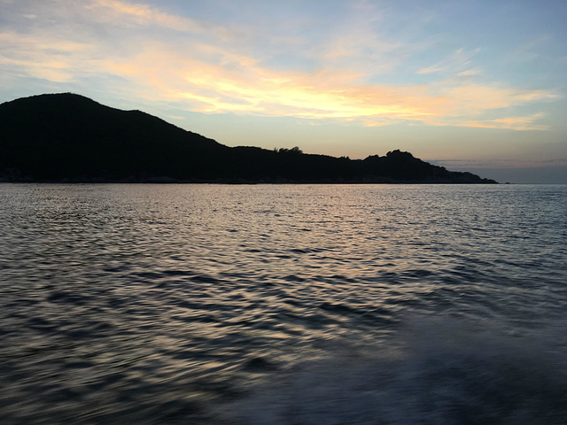 边走边欣赏,不一会功夫沙滩上人陆续多起来,游艇摩托艇也多起来了。和一游艇小哥讲价100块载我们到海上看日出(小哥坦言旺季是不可能有这个价位的)。坐着游艇飙出了港片的感觉,不一会就到了看日出的集中点,刚刚好赶上。