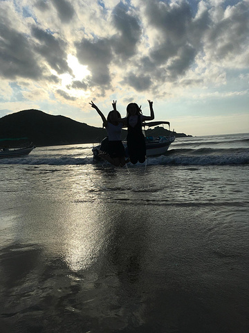 三个旱鸭子的我们必须得租游泳圈才敢下水(强烈建议不要在沙滩上租,因为你会发现很贵),第一次下水的我们非常非常兴奋,也呛了相当多的海水,还真不是一般的咸啊。由于下水没带手机此处无法pos出照片,就以跑完澡后再逛沙滩的 代替吧。
