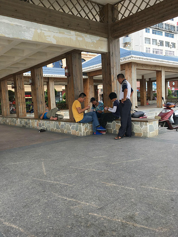 集散中心里面打牌的就是等着招揽游客的面包车司机,也有好多市民会在这里乘凉,后面的房子就是南澳县城了
