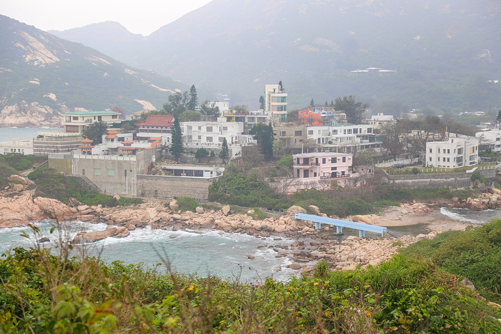 蓝桥是一座颜值还算高的桥,但游人会频繁经过。如果一直有人的话,可以选择其他的拍摄点。比如蓝桥旁边的礁石群。通过蓝桥,就进山啦。从山上俯瞰,石澳泳滩犹如明信片中古老的中式村落,传统质朴的氛围,与建于海角山峦上钟鼎之家的豪华住宅,形成强烈对比。来自游记带着头纱去香港——香港旅拍小众点及路线(文末在石澳打卡《喜剧之王》拍摄地)