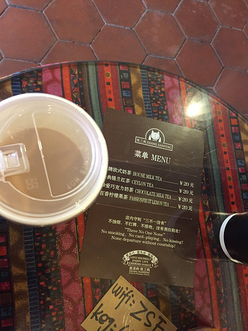 张三丰奶茶,之前以为是熬的奶茶,其实也是奶茶粉沏制而成的,很一般,不过买了他家的套杯留作纪念