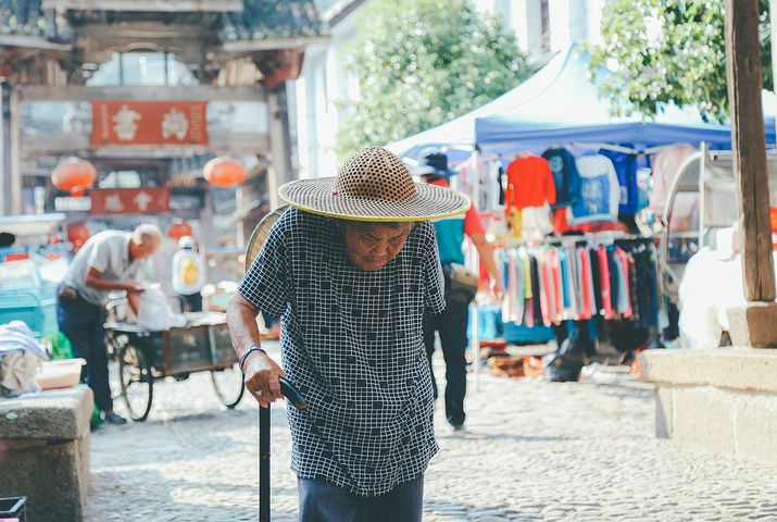 如今这样的古村落,留下的多是老人和孩子。老人早睡早起,清晨的街上随处可见他们散步的、休息的身影。