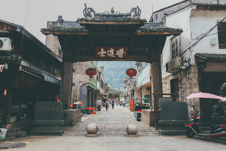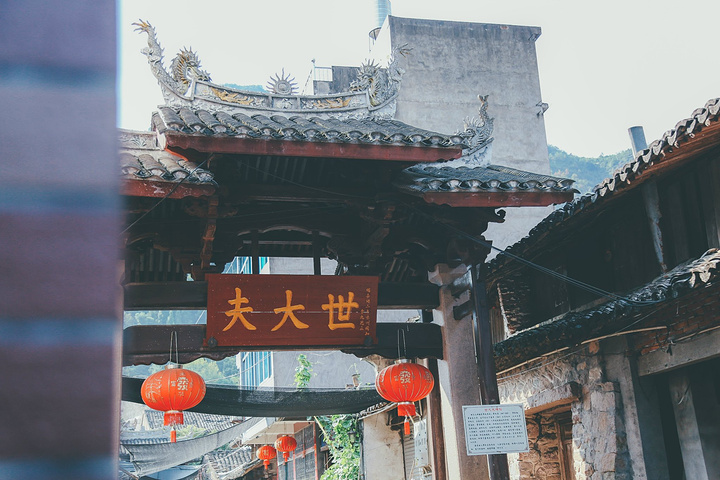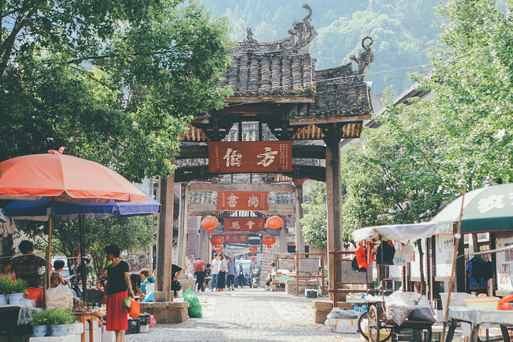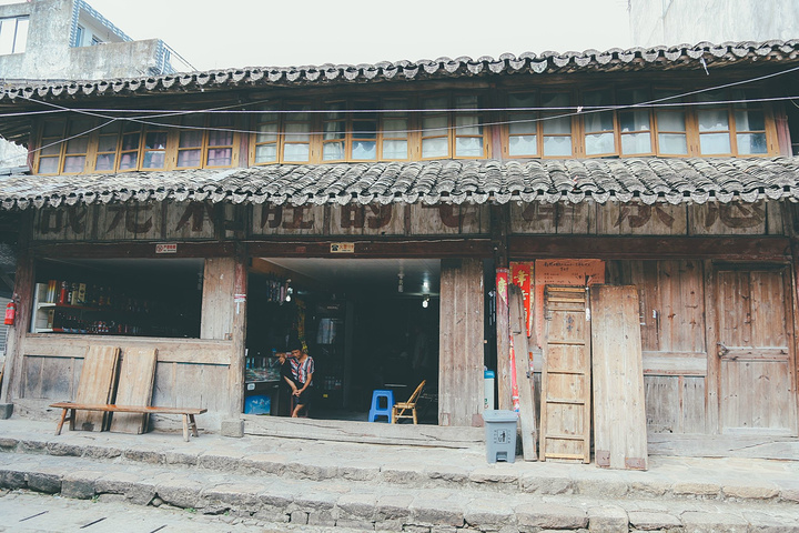 因为是古村落,这条街上除了牌楼外,居民所住的房屋也有百年历史,木质结构和灰瓦组成。这种结构的屋子在中国古代甚是常见,一般为一层或者小两层,不会太大。现在这样的房屋中还住着人,并且一楼被改造成了卖杂货的。