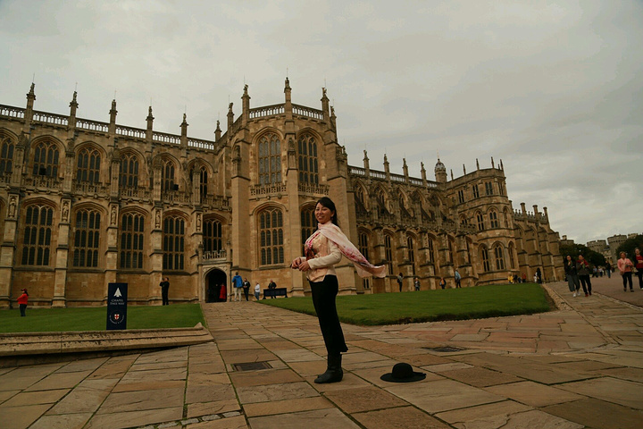 这个高耸于城堡中央高岗上的圆塔,建造于12世纪,是以前用于防御外侵的炮垒,现在城垣上都还设有古炮。以前是没有这么的高,是因为后来乔治四世在其上增建了巍峨的冠顶部分,使之成为了古堡内最高的建筑。站在塔上,可以看到温莎小镇和城堡全貌。我们随一个中年秃头男性来得塔顶,一直飘着小雨,风大的戴不稳帽子,那个冷呀,加之听不懂他的讲解,总想躲在避风处,可导游特别负责,一直讲解,而且一直怕我们走丢,如果是中国导游,在这种风雨交加☔️中,早就跑了