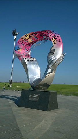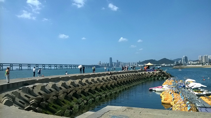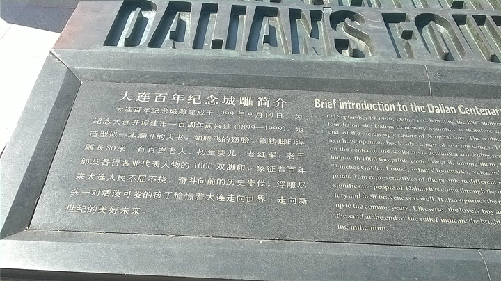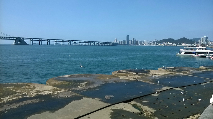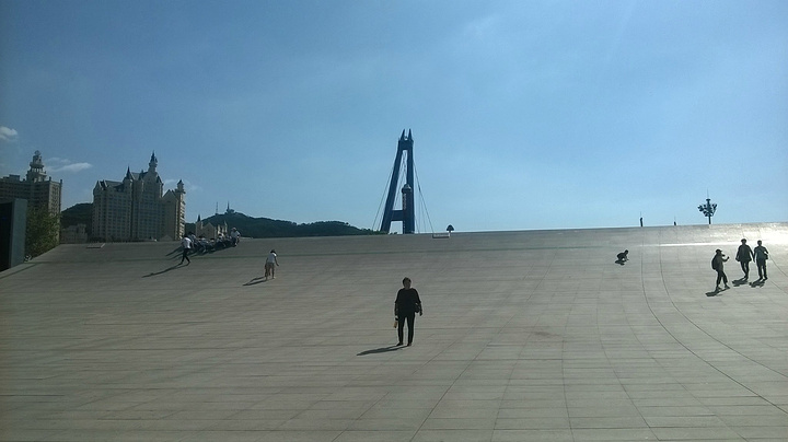 用过膳后,第一站亚洲最大的广场--星海广场。也许是整改缘故吧,周围也在维护,至于大我倒是没有觉得,可能是眼花。但周围的海景公寓的确不少,站在上面一览湖光山色应该是最好的,高大气派的高楼映衬出广场的气势和威风。沿着石块铺成道路前行,在阳光直射下泛着刺眼的,绿油油的草坪格外清新,散发出阵阵香气和诱人的幻想。快到海边,远远望去,那翱翔展翅造型引人入胜,冲上去又怕滑下来,胆颤心惊,但还是试了一回。海是那么蓝,那么清,那么亮,海鸥尽情的飞翔,尽情在寻觅,一会儿高空而下,一会儿直冲云宵,一会儿曲线灵动,心灵的享受。远远的跨海大桥犹如一条纽带联接你我,把距离缩短了,把空间拉近了,在茫茫的天空下,原来如此美丽和妩媚,怪不得在灰机上看的真切。远方的小岛并排欢迎来访的客人,有幸目睹芳容。