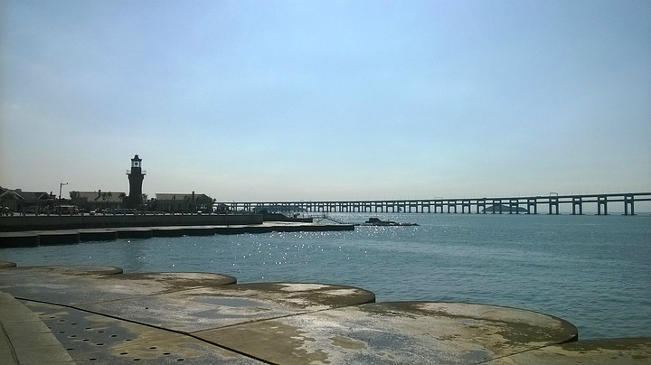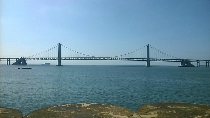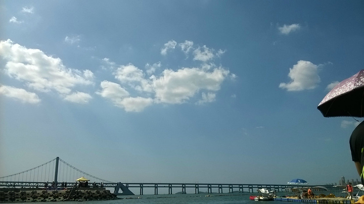 马不停蹄的赶到付家庄浴场其实就是一个过渡,想把浴场欣赏完了,主要原因是登莲花山观景台看,一睹想思苦。莲花山观景台位于星海广场和森林动物园南门,从两者都可以上攀登,但根据实际情况,南门太远,只有走星海广场比较近,但也需要近1小时时间了,那知计划没有变化快,在饱览浴场之后去南门,碰见了驴友,暂时放弃了计划,改去走走跨海大桥,这才是恶梦的开始。开始以为跨海大桥不长,中途可以变道,那知根本不可能,单行道,上去了就不好退下去了,全桥全长近7公里,直至沙河口区万达广场,行走近2个半小时 ,没有公交通行,全是高速车辆,这个可把我吓蒙了,但还是硬是坚持下来,一路走来一路打探,终于如梦初醒了,完成了当初走走跨海大桥的相法。