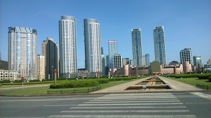 离开星海公园在青泥哇桥吃过饭后,就去了东港商务区,到了才知道,东港就是CBD,那阵势那派头那装潢让我想入翩翩,在这工作就是身份和品质的象征。东港包括大连港,15库,引人入胜的音乐喷泉,水城和海之韵公园,也就是滨海路最末端了,目不暇接,眼花潦乱。15库就是大连港仓库,废物利用,得天独厚成了小滋情调的临海场所,不过环境值得商榷,内部构造有点意思了。这边的海水是差点,没有星海干净清澈。广场音乐喷泉倒是高山流水,激昂非凡,随着音乐舞蹈,由其是夜幕下靓丽,婀娜多姿,回味无穷。走到头就是海之韵公园,很大很壮,翻过去就是美丽的棒槌岛,风景如画,如诗如梦,海天相接,不愧是风水伴侣宝地了,明日就芳容一现。