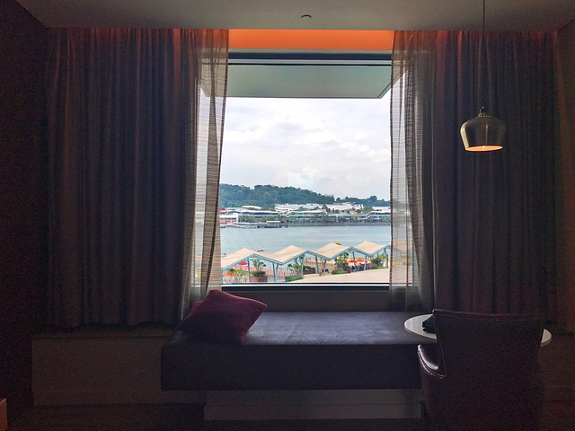 充满摇滚元素的房间窗前正对着海湾,可以坐在窗前静静的看着海景,看着船舶驶入驶出,日出日落。