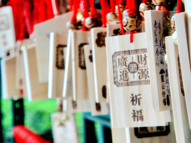 再往前走周围有各种祭拜和祈福的小亭子,抓到美女一只,自己下山的时候也写了一个挂在上面,一个个祈福的小牌子,都是对亲人的诚挚的祝福。