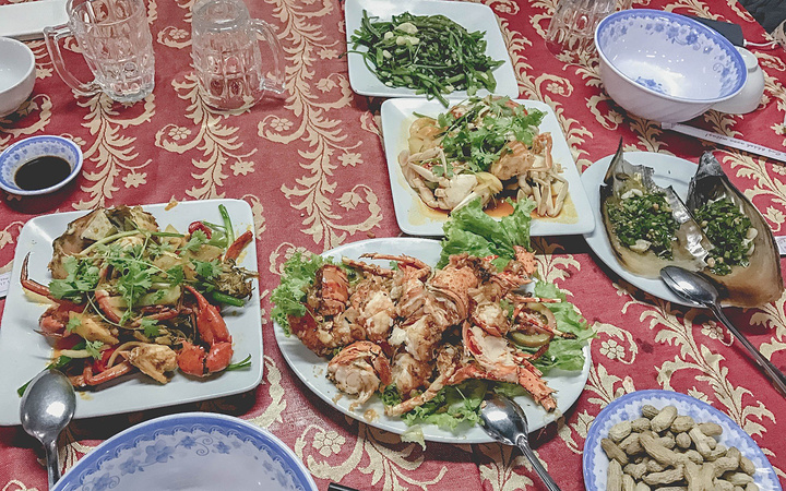 到了芽庄酒店是现找的,因为度假的人比较多,酒店并不好订,在网上找到一家,环境不是很好,但是非常便宜,9美元吧!安顿好就去觅食了,来芽庄肯定要吃海鲜,吃海鲜一定会被宰,无所谓了,这一顿吃了一千多。没吃饱,又去逛街吃夜宵了。