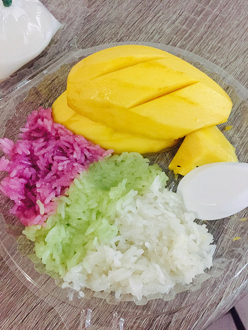 芒果糯米饭,3色的,味道还行,饭比之前餐厅的好吃,但整体味道还是略逊于餐厅的