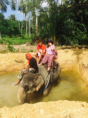 之前有看过大象表演训练过程的新闻报导,很是残忍,毕竟去的是泰国还是想体验一下骑大象,想着只是骑一下,不是看表演,应该还好,所以还是报了。当看到导游拿着那种铁钩赶路时,就有点后悔了,而且那只大象看起来就没有精神,导游介绍已经25岁了,在途中我尽然还感觉到大象在颤抖,不知道是不是我的错觉,整个1小时心情都不是很好。导演好热情,一直在说,我帮你们拍照。最后买了2小包香蕉喂大象,算是弥补知道愧疚的心。
