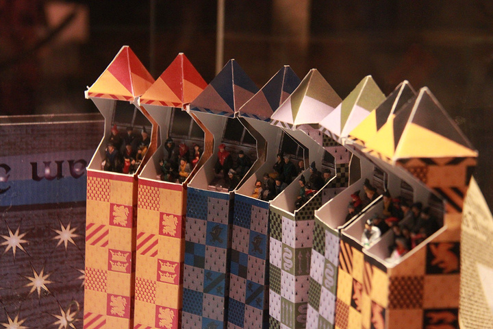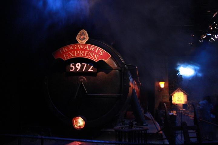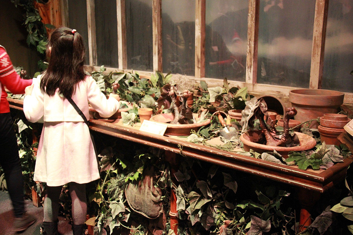 分院帽给几个参与互动的人都分好了自己的学院,本以为后面有什么任务,谁知道然并卵,前两个厅都只是为了提高游客情绪而设计的,第三厅开始才是真正的魔幻之旅,刚进去黑乎乎的伸手不见五指,突然一声火车汽笛声,有了灯光,也有了整齐,我们穿越了9又3/4站台,准备搭乘火车前往霍格沃茨。