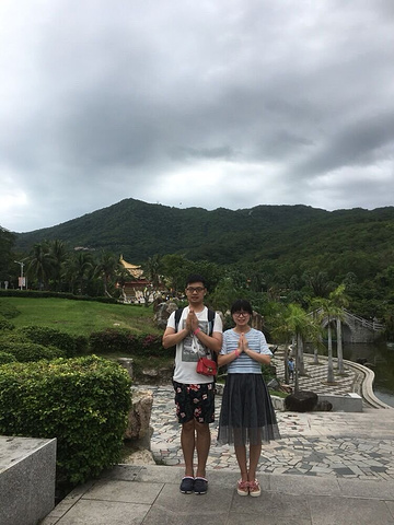 早上吃完早餐,09:30在海月广场上车,沿途接同行游客,14组家庭一路前行。10:30抵达南山,导游换票检票,进入南山景区又来一个南山向导一路给我们讲解寺庙规矩及重要景点。由于我们时间很紧,导游主要到我们去两个最有名的景点,金玉观音和海上观音,金玉观音是全黄金和玉石构成,主观音3.8米,周围围绕5000尊私人供奉的小观音(私人一尊一万大洋呢 ),还有九层楼的sh舍利子值得拜,我们跟着导游一起去金玉观音售票点购买了自己守护观音卡和祈福卷68元/人,不需要守护观音卡的也不强求购买依然能进入,接着左手拿着票和卡沿着庙走一圈,边走边摸转经筒祈福,到大殿门口处记得脚抬高不要去踩门槛,不吉利。进入大堂就是庄严的观音菩萨了呢,在居士带领下念诵经文和礼拜。这是最灵的菩萨,一定要去拜拜,出来后将卷投到功德箱里面有寺庙工作人员进行焚烧,回到入口处,去拿一注香上拜就可以了。(居士说了出来上香就等于还愿了,南山里面所有的香也都是免费的呢,不用特意购买)。接着导游带我们到了海上观音大门,告诉我们一些注意事项以后,发给我们午餐券,我们决定吃完饭后再去海上观音,南山素斋是出了名的,味还是蛮好的,需要的盆友记得提前购买,现场是50元/人。饭后我们去海上观音抱佛脚呢,嘻嘻。希望来年所有愿望都能实现!南山很大,我们时间短,还去了尼泊尔馆和三十三观音庙,如果有机会下次回去待一天,小A我还是一个比较虔诚信佛,记得购买电动车票,很大呢。