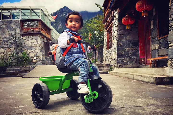 汽车抵达卧龙关时,已是中午时光。我们将在这儿午餐。趁着店家做饭的空隙,端着相机,漫步在小村里的阡陌巷道,任醉人的花香在鼻尖飞舞。我深深地呼吸,享受难得的自由和放松。只有两岁零两个月的小屁孩二毛,爬上拖拉机,这就是传说中的老司机。