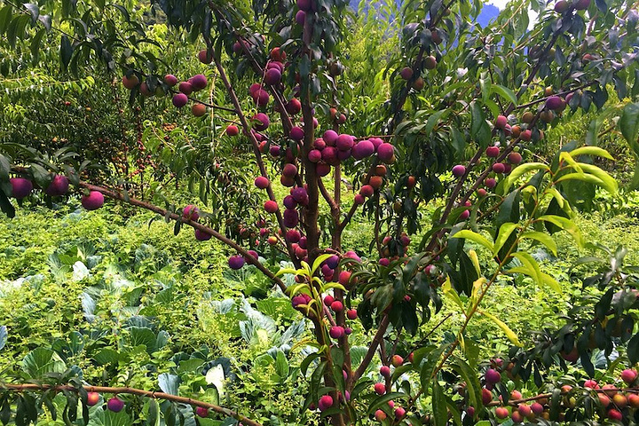 卧龙有种特产叫脆红李,这种水果生长在2000米以上的高海拔地区。高原剧烈的昼夜温差变化,不仅吃起来异常甜蜜,而且嚼起来嘎嘣脆。每年10月是红脆李的收尾季,深绿的树枝上零星地挂着紫色的果实,树下的跑山鸡双脚不停地刨着地面,虫子被迅速翻起。传统的有机种养,我们不会放弃这样的美味。