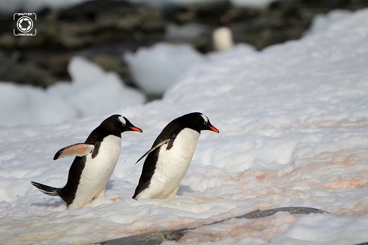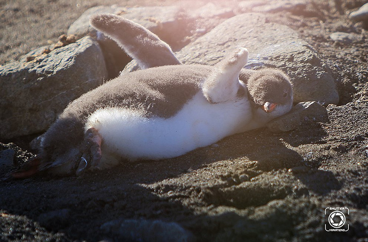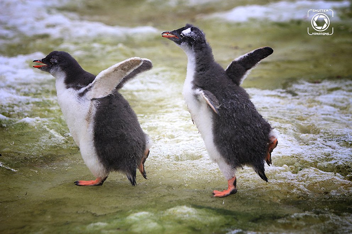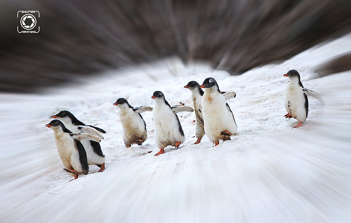 企鹅是我见过的世界上身材最有喜感和最会用肢体语言逗乐的大师,穿着燕尾服的他们每天却在认真的从事着小丑的职业,展翅高飞的姿势却像无奈耸肩膀的造型,像满清女子那样摇曳的缓行也能走出蹒跚的钟摆态,还时不时学熊猫来个偷懒“滑”,肚皮充滑板的出溜那么一两下。