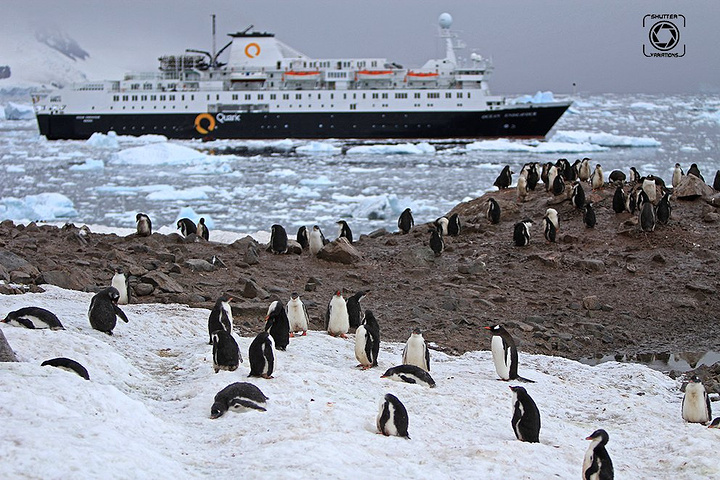 它就那样停在了海边,与我们隔海而望,岛上的企鹅们基本上都到了,大家三三两两的站在一起:观望着、议论着、猜测着......