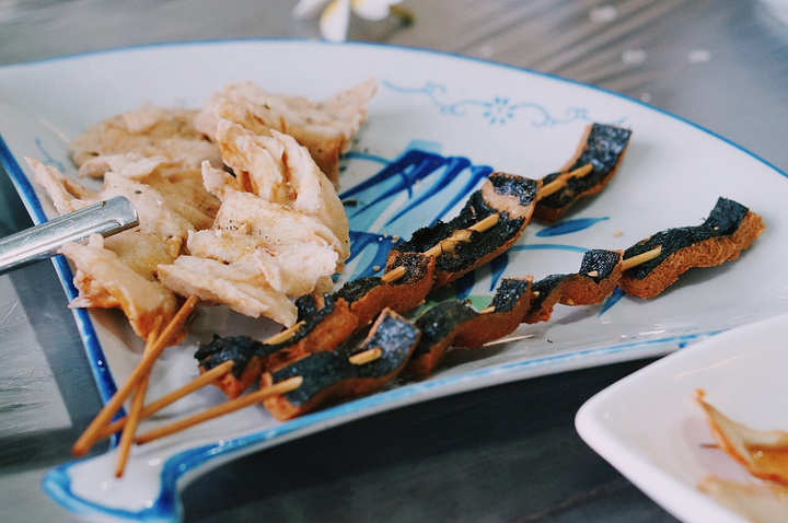当然也有黑名单。在莲华素食府吃了一顿莫名其妙的斋饭,卖相远胜于味道;蚝煎是潮州的著名小吃,因为同样喜欢台湾的蚵仔煎,所以蚝煎也被划为此次的必体验,蚝煎是将鲜牡蛎与甘薯粉一起小火煎熟,最后浇上鸡蛋汁,蘸着鱼露品尝,我们去的店叫“潮州老彬专工蚝烙糕粿”,名字真是难念,蚝煎味道也很一般,一是实在太咸,二是吃惯了新鲜海货的我们对于这种过度加工的海鲜,还是有点接受不了;尤其接受不了的,是众多游记和美食攻略里提到的“腐乳饼”,兴致勃勃的啃了一口,一秒钟腻到反胃……