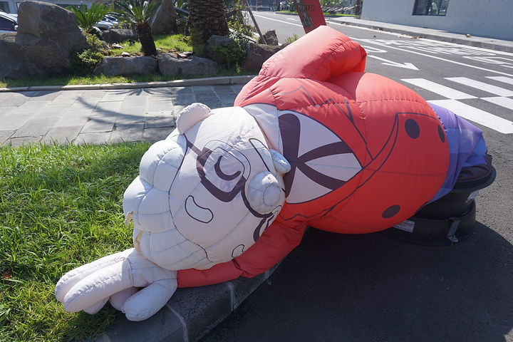 离开信不信由你博物馆在去柱状节理带的路上,看到一个被台风打倒的肯德基爷爷,在我拍照的间隙,路过的几个富有童心的游客试图把它扶起来,结果还是失败了。