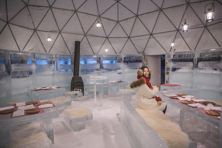 从桌子到椅子全由坚冰制成的冰之餐厅,是只有爱丝冰城才有的体验!这里提供爱丝冰城的村民们从世界各地收集的食物,比如使用北海道当地新鲜蔬菜的热奶酪火锅。前菜、汤、热饮料等都可以在冰之餐厅内品尝。