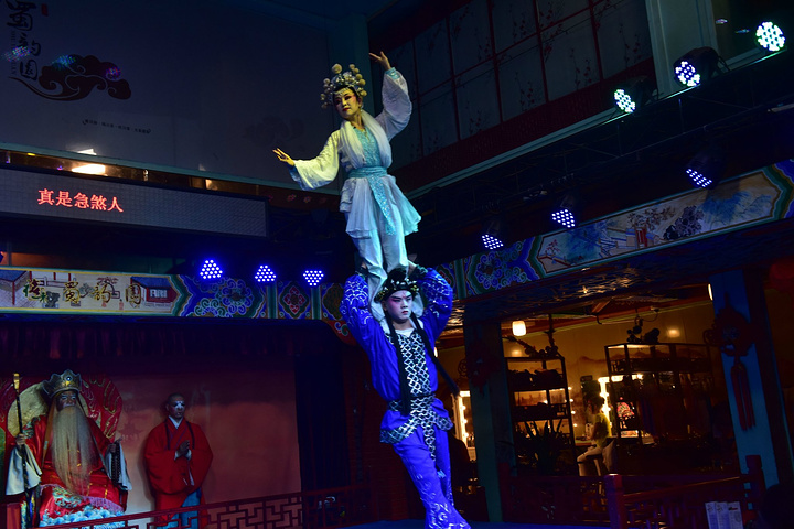这家戏院叫做禧来蜀韵园,一场戏下来感觉像是见识了新世界吧,毕竟传统文化的东西不是在什么地方都能够体验得到的。不同于话剧、京剧,更具有自己地方性的特色,还有世界遗产文化——变脸,这也是川剧的特色之一。