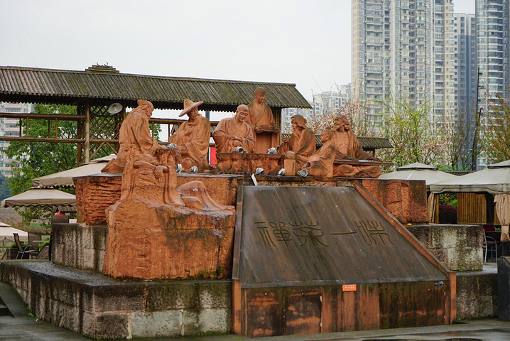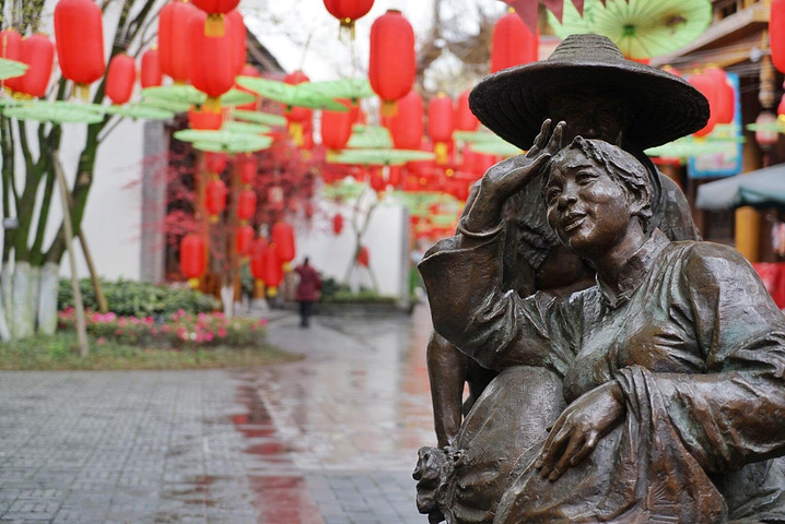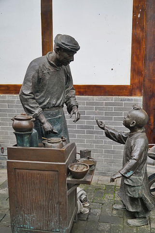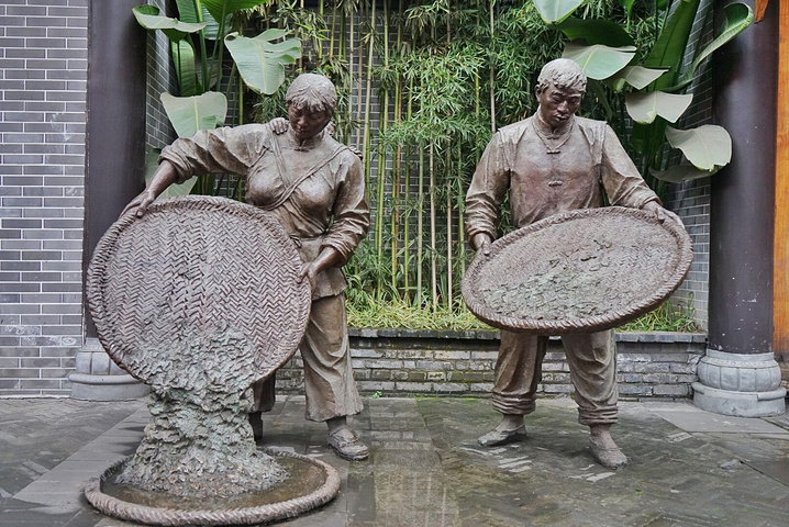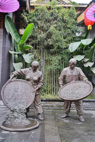 古街上有不少铜制雕塑,演绎的都是老四川的生活场景。播种、收获、叫卖等等,很有趣。