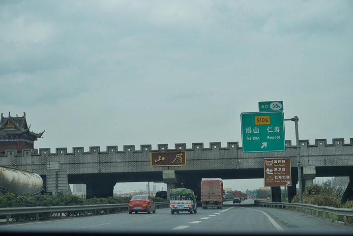 到了眉山收费站,很大气很漂亮~虽然没阳光,但是云层和天空还是很美~空气也很清新。