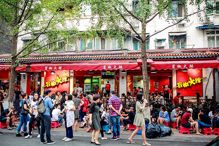 这条普通的小街,因为冒椒火辣而变得生动活泼,周围也开满了各种小吃