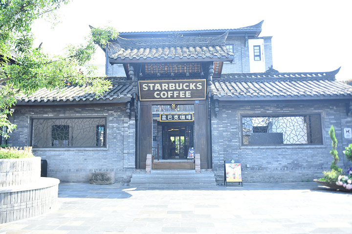 星巴克开在老式建筑中,中式的大门,中式的窗,挂上一块洋文的匾,风情独特。