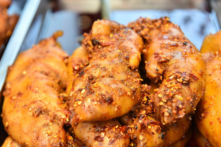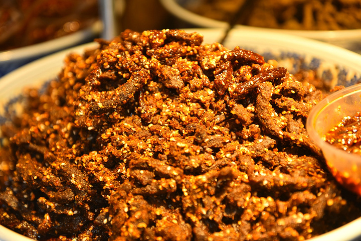 很多贩售成都老牛肉的店铺,特产。
