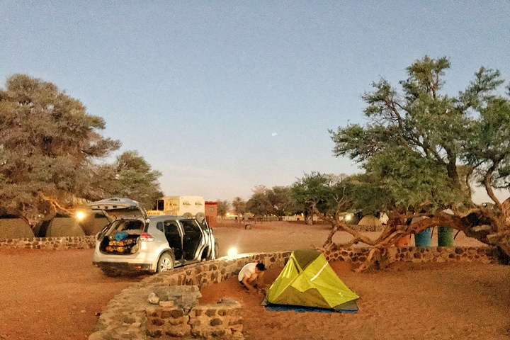 约下午3点前后到达的目的地,NWR旗下红沙漠入口处的酒店,今天晚上的帐篷。这边公园的费用是先付的,价格和埃托沙也是一样的,我们两个人一辆车费用是170纳币。