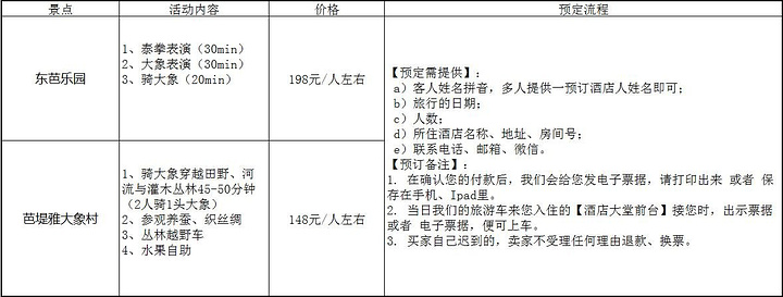来到芭堤雅怎能错过和大象亲密结束呢,话说淘宝不是万能的,但是没有淘宝是万万不能的。上午居然还能预定下午骑大象的行程,真是太高兴了。通常芭堤雅骑大象,就是两个地方,我做了对比图,大家可以看一下: